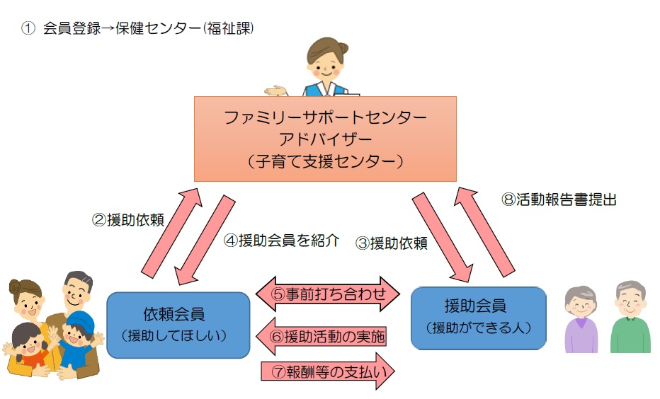 子育てのサポートをして欲しい人(依頼会員)とサポートしたい人(援助会員)が会員登録をして、