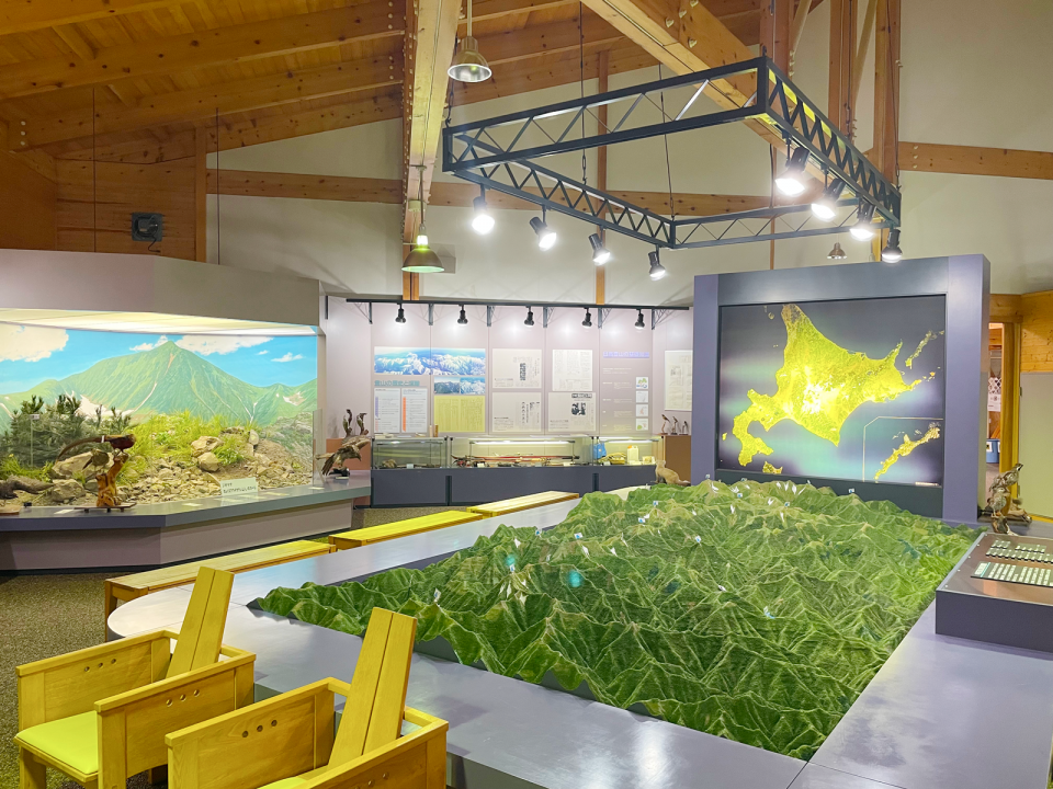 中心施設となる日高山脈山岳センターでは、日高山脈の自然・動植物や山岳遭難事故を紹介する展示コーナーのほか、キャンプグッズの販売(薪、木炭、蚊取り線香、ソフトドリンク、コップ、皿等)があります。