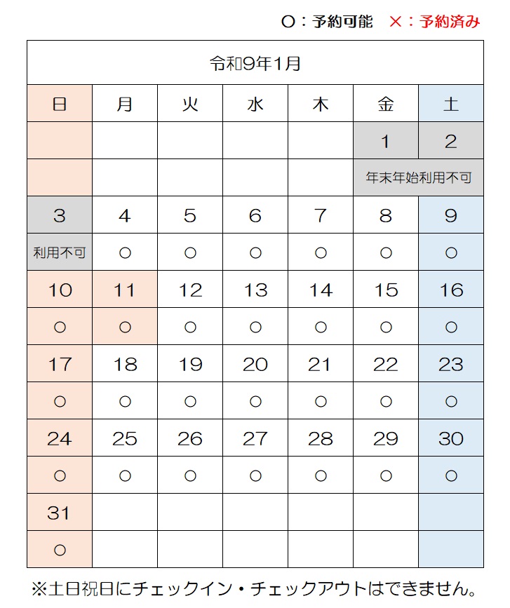 ※入居日及び退居日は土・日・祝日以外とします。また、年末年始の役場閉庁日は利用できません。
