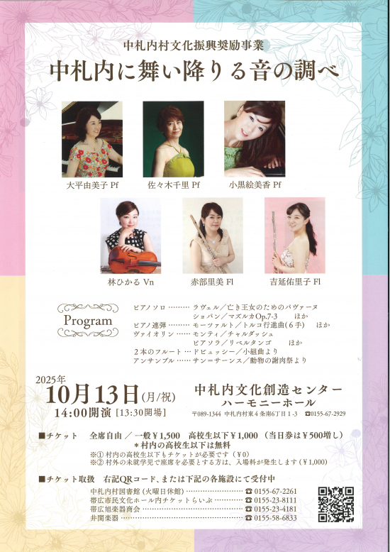 ◆取扱:中札内図書館、チケットらいぶ、(株)帯広旭楽器商会、井関楽器