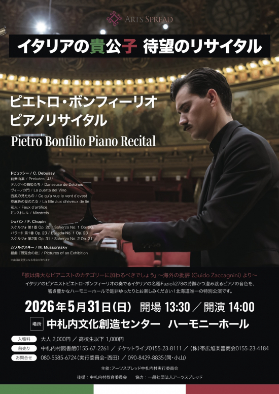 (2026年5月31日開催)ピエトロ・ボンフィーリオ ピアノリサイタル
