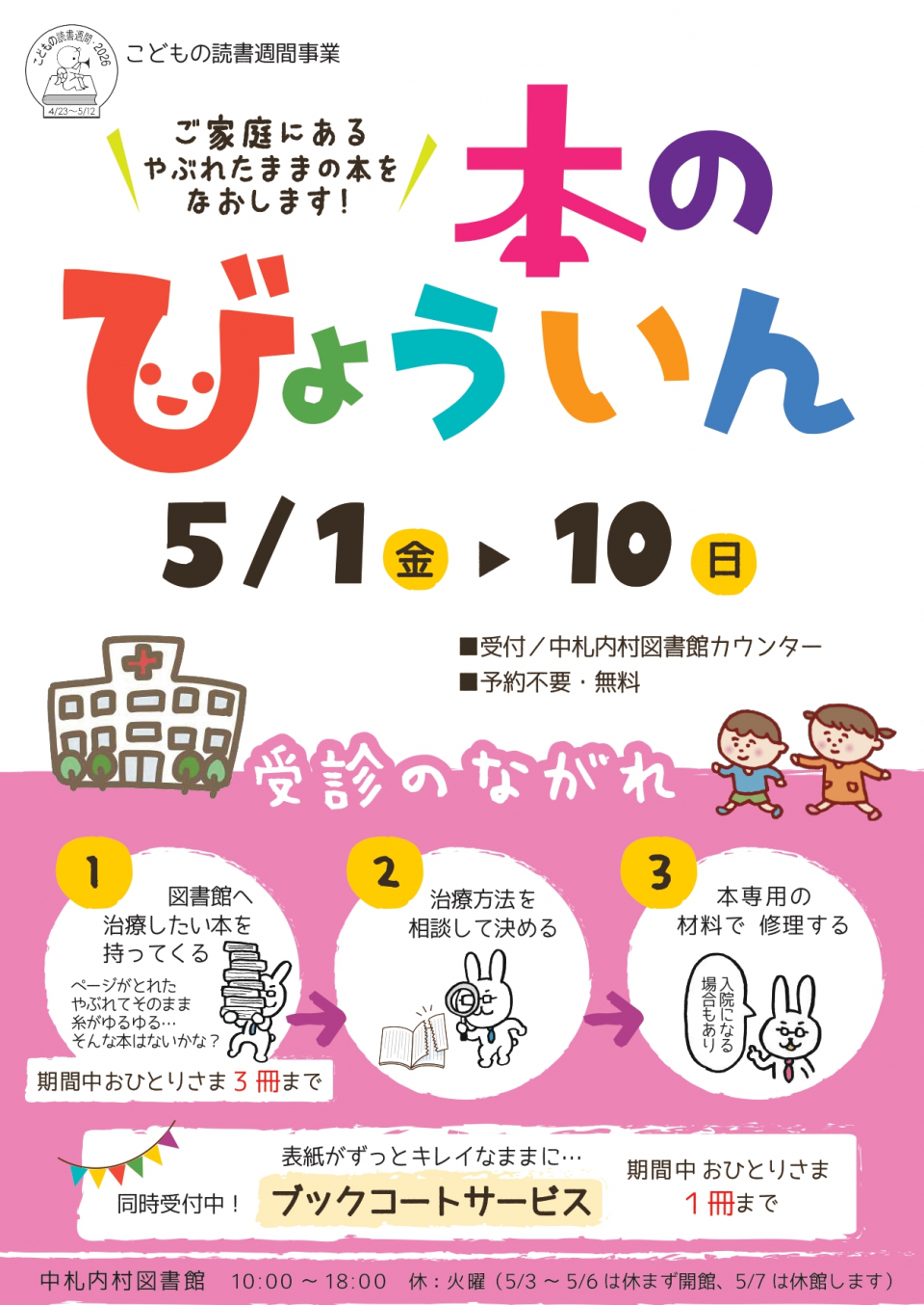| 冊 数 | 修理をしたい本 1人3冊まで ブックコートをしたい本 1人1冊まで |