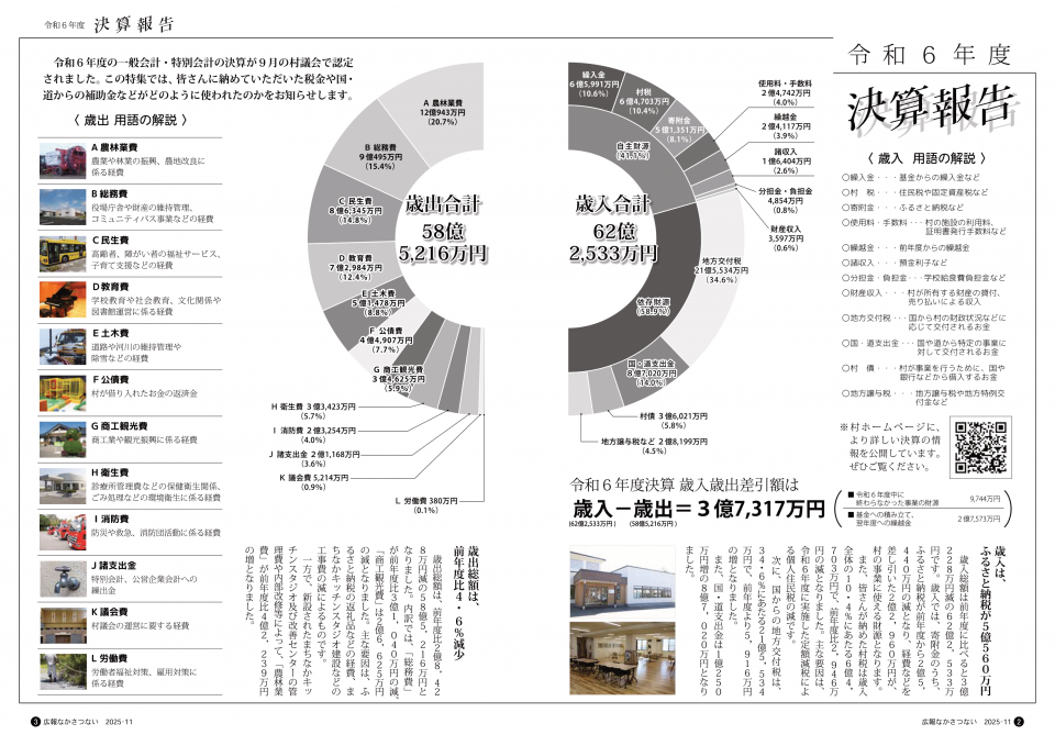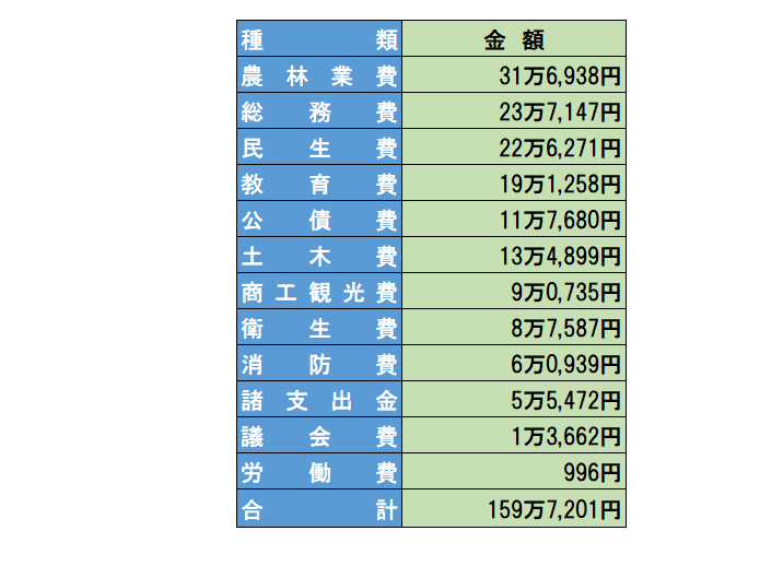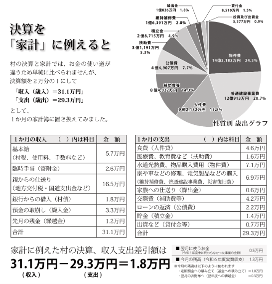 ※村民一人当たりの歳出額は、歳出÷人口3,816人(R7.3.31現在)で計算しております。